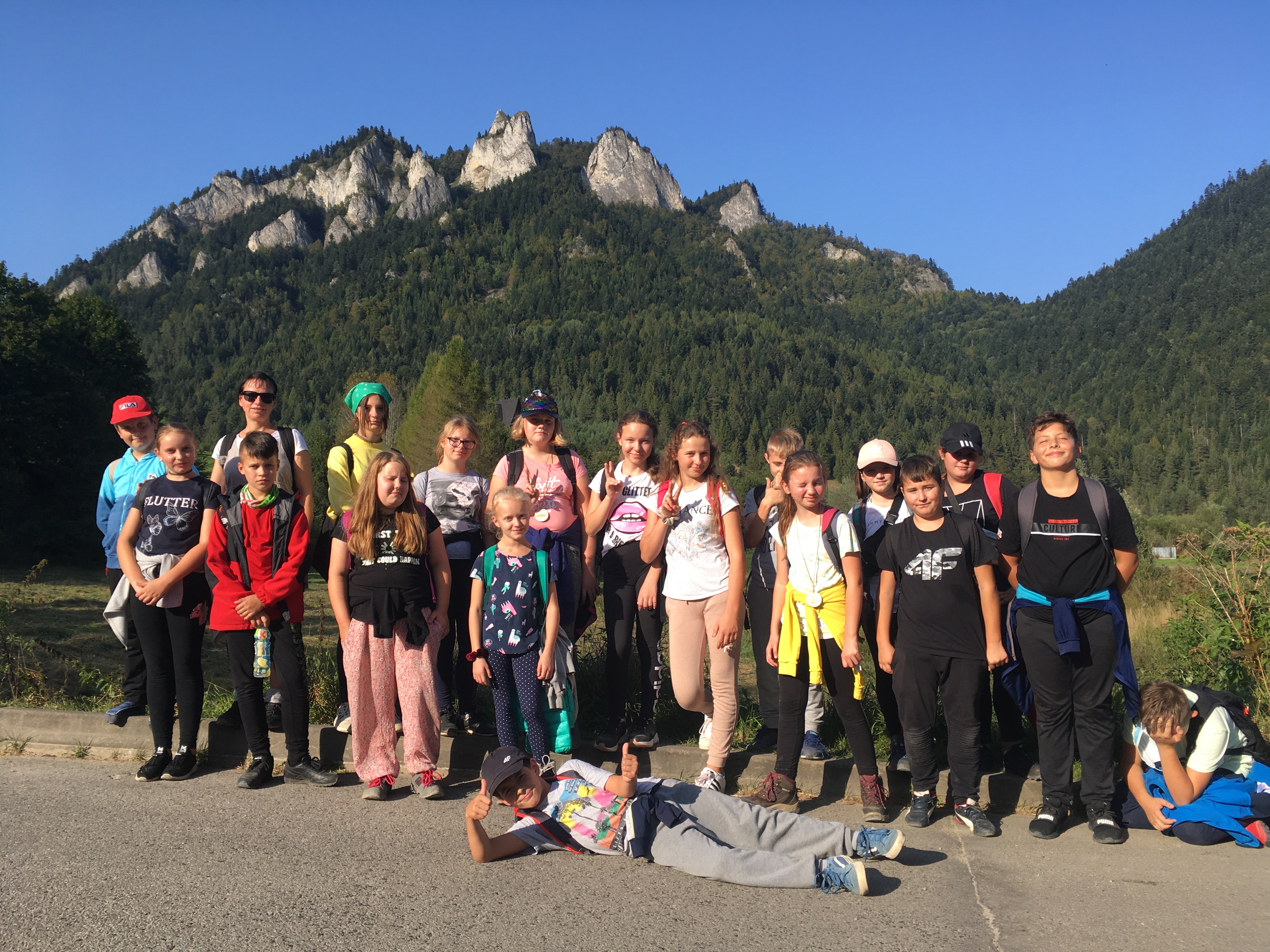 Dwudniowa wycieczka SKTK w Pieniny odbyła się w dniach 22-23 września. Wzięło w niej udział 18 uczniów z klas IV – VII. W programie wycieczki znalazło się m.in. wejście na najwyższy szczyt Pienin Właściwych, Trzy Korony, spływ Przełomem Dunajca, wyjazd kolejką linową na Palenicę oraz wizyta w Muzeum Pienińskiego Parku Narodowego. Uczestnicy wycieczki mieli okazję poznać piękno przyrody regionu pienińskiego, dowiedzieć się o specyficznych gatunkach fauny i flory tego regionu (choć niestety nie udało nam się nigdzie dostrzec pięknego, chronionego gatunku motyla o wdzięcznej nazwie Niepylak Apollo) , zapoznać z jego historią, tradycją (niektórzy chłopcy mieli nawet okazję poflisakować na Dunajcu) i legendami (na przykład z tą o powstaniu Pienin z pereł rzuconych przez uciekającą przed Tatarami św. Kingę) oraz… wykąpać w basenie z podgrzewaną wodą w promieniach zachodzącego, wrześniowego słoneczka. Piękna pogoda towarzyszyła nam podczas całej wycieczki a deszczem powitały nas dopiero nasze rodzinne strony. Serdecznie dziękujemy panu Janowi za bezinteresowne podjęcie się roli opiekuna oraz panu Łukaszowi, który naszą wycieczkę zorganizował i poprowadził za barwne, iście pienińskie bajerowanie, ogrom przekazanej wiedzy, dużo cierpliwości do nas wszystkich oraz profesjonalne i bezpieczne przeprowadzenie nas najciekawszymi pienińskimi szlakami.