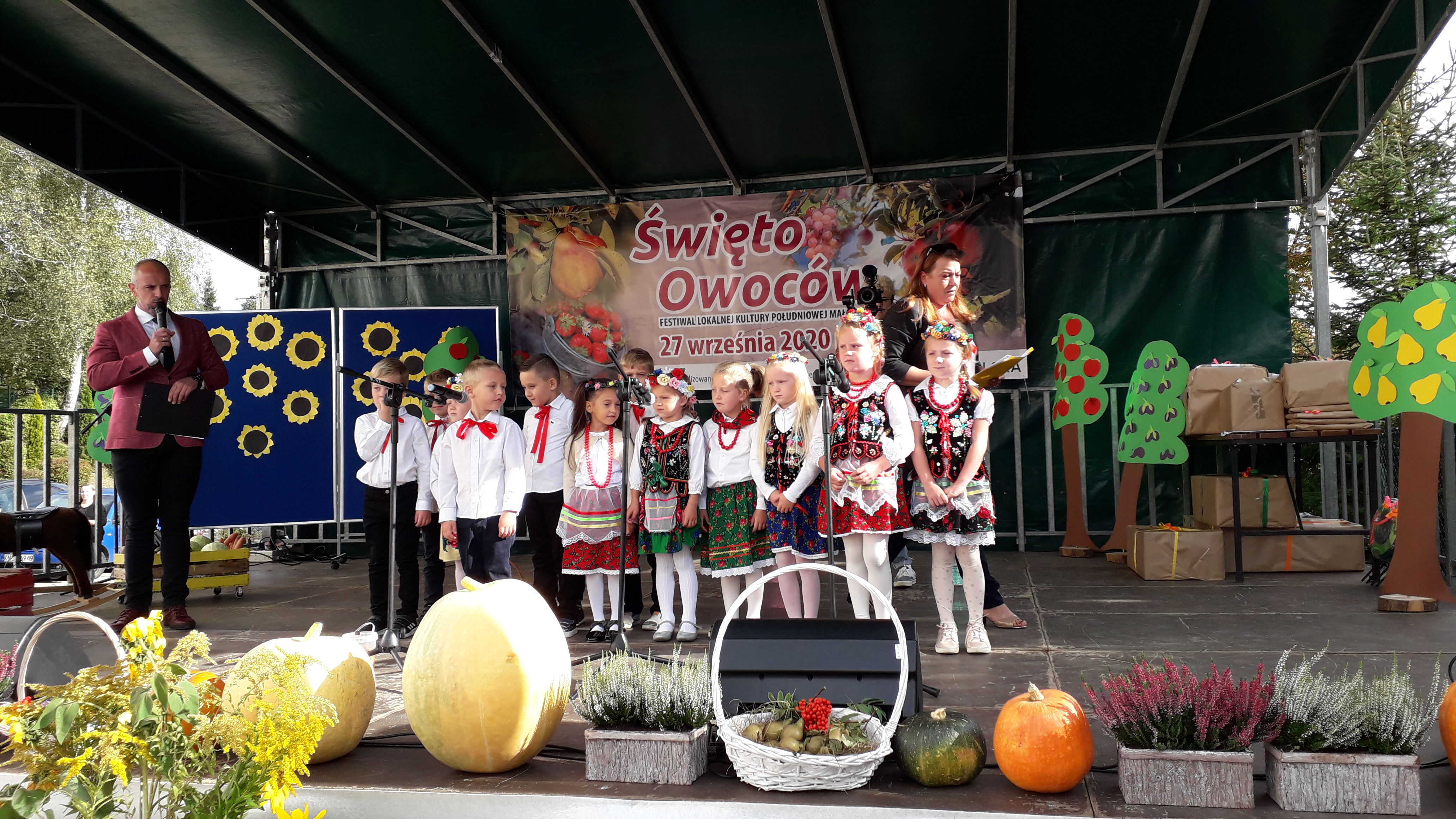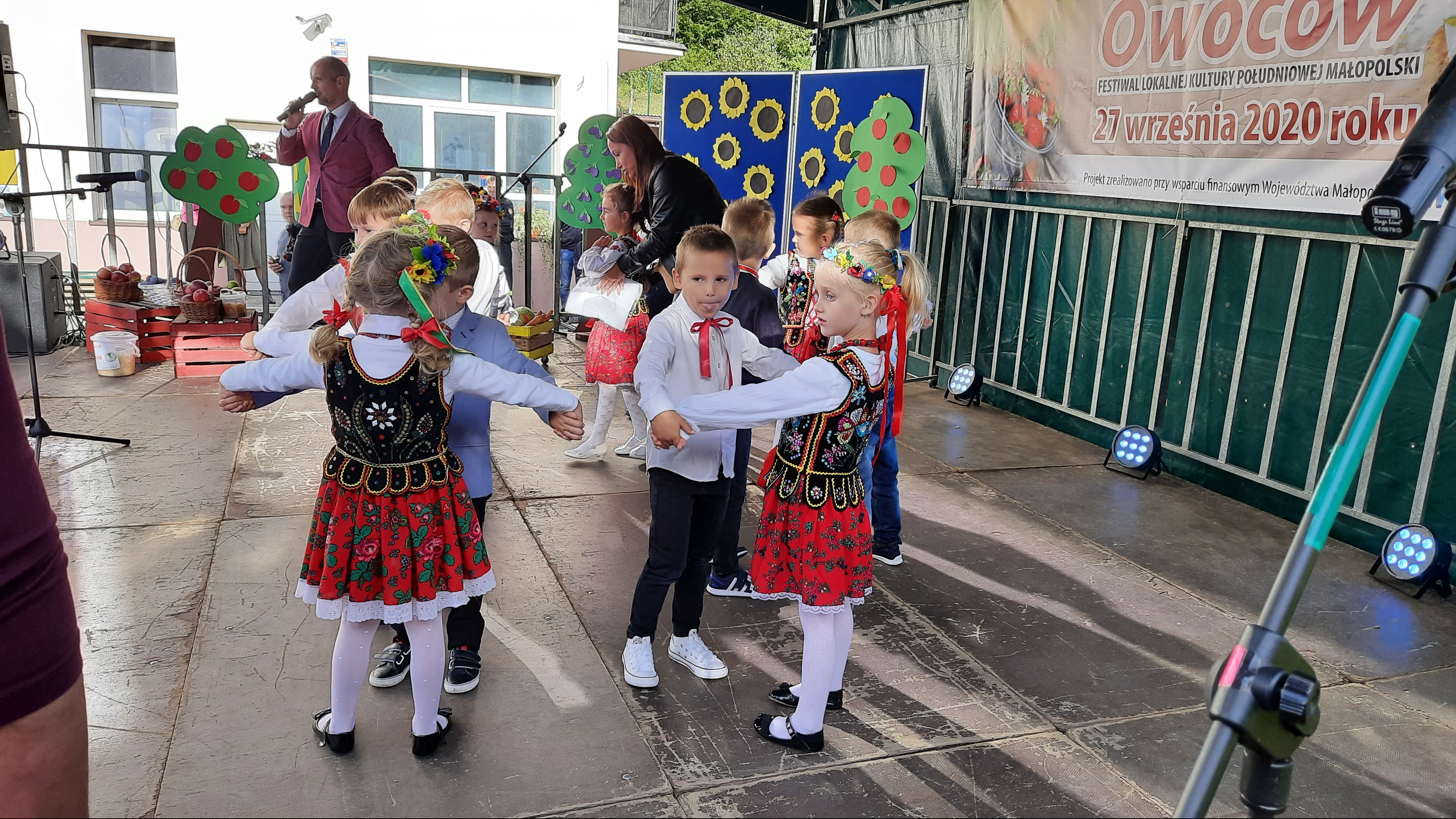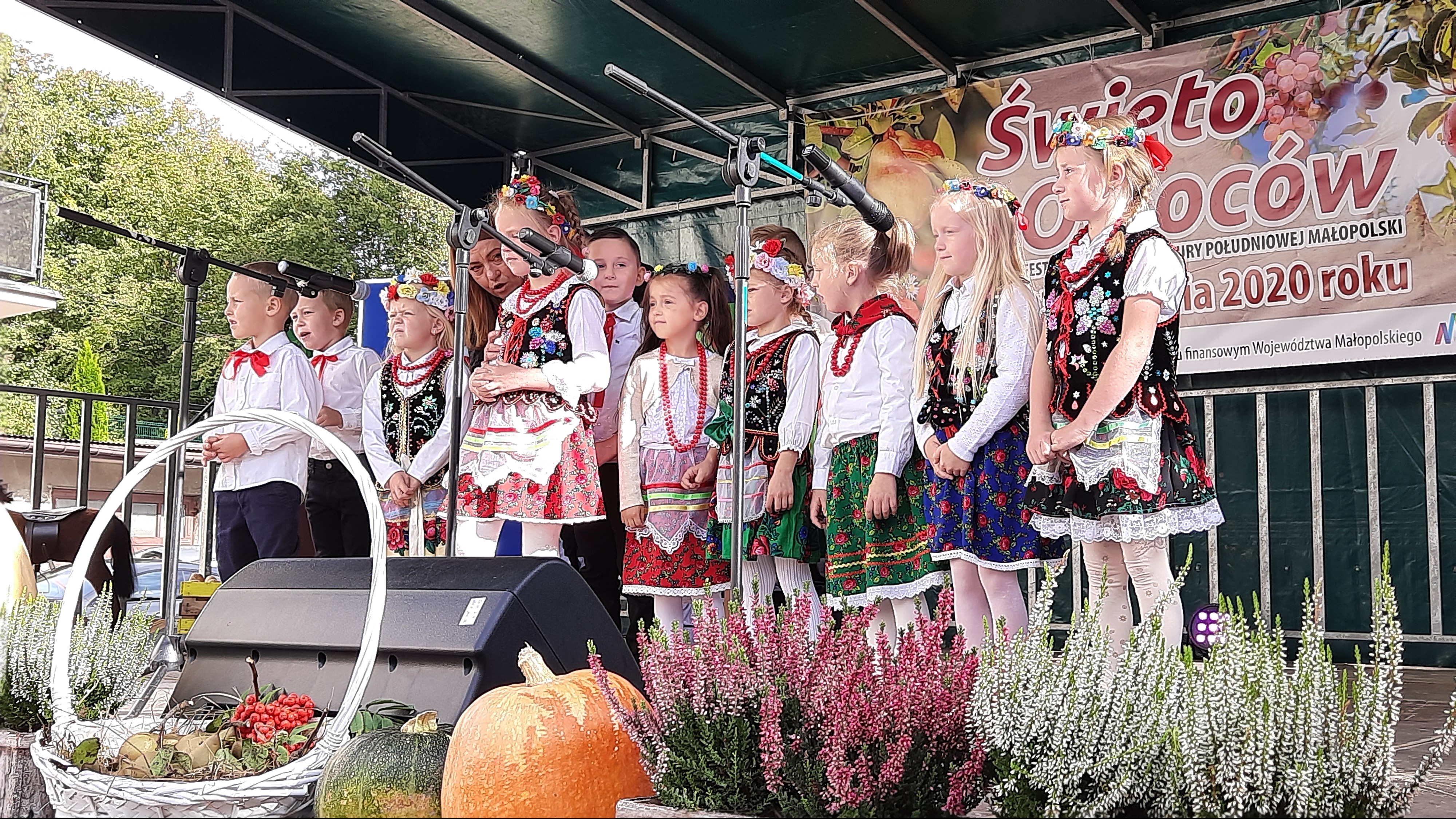 W piękne niedzielne popołudnie 27.09.2020r. na placu przez naszą szkołą odbyło się ” Święto Owoców”. Koło Gospodyń Wiejskich i Stowarzyszenia promowały kulturę ludową Małopolski. Można było zakupić pyszny miód od naszych regionalnych pszczelarzy.