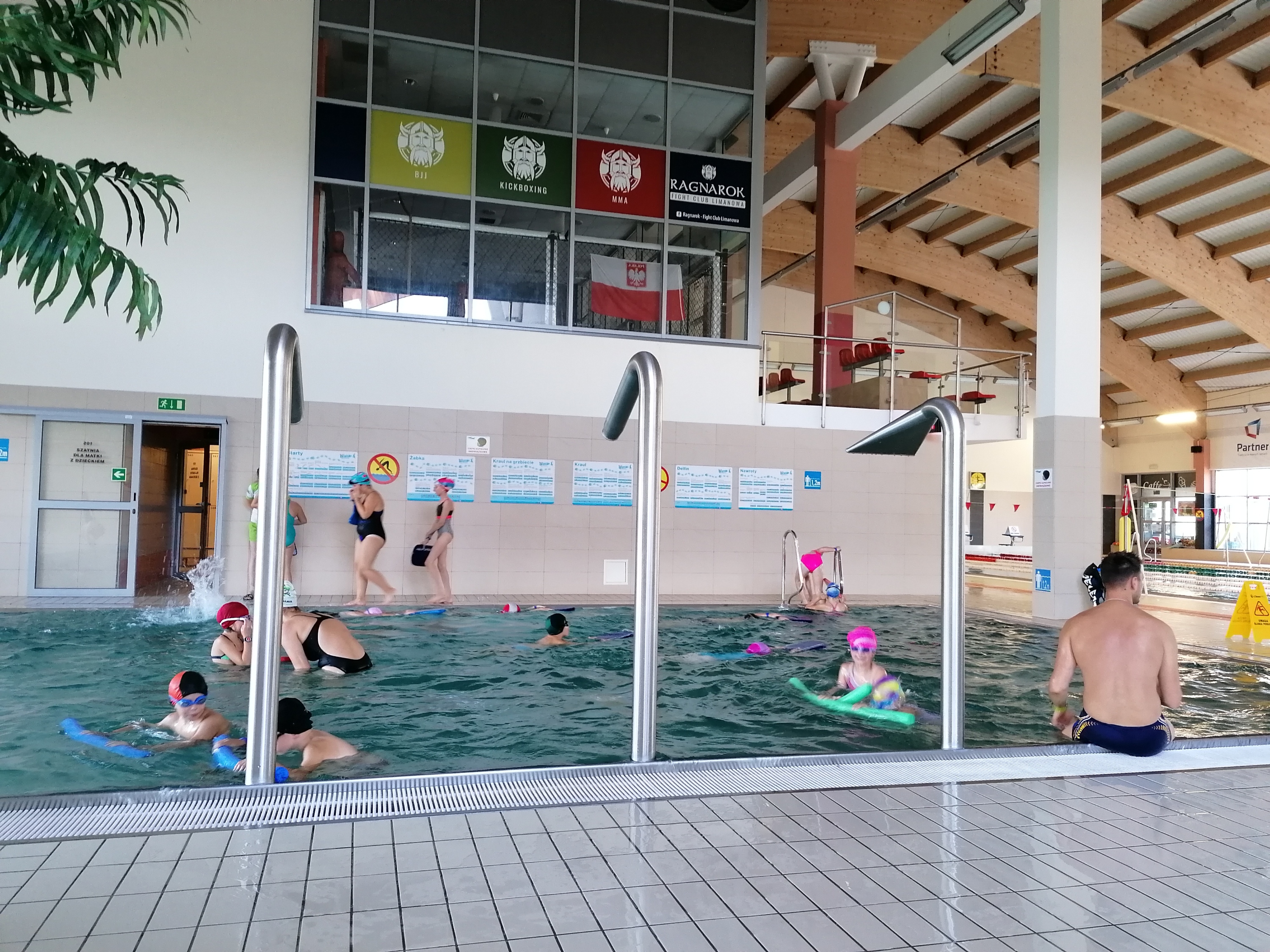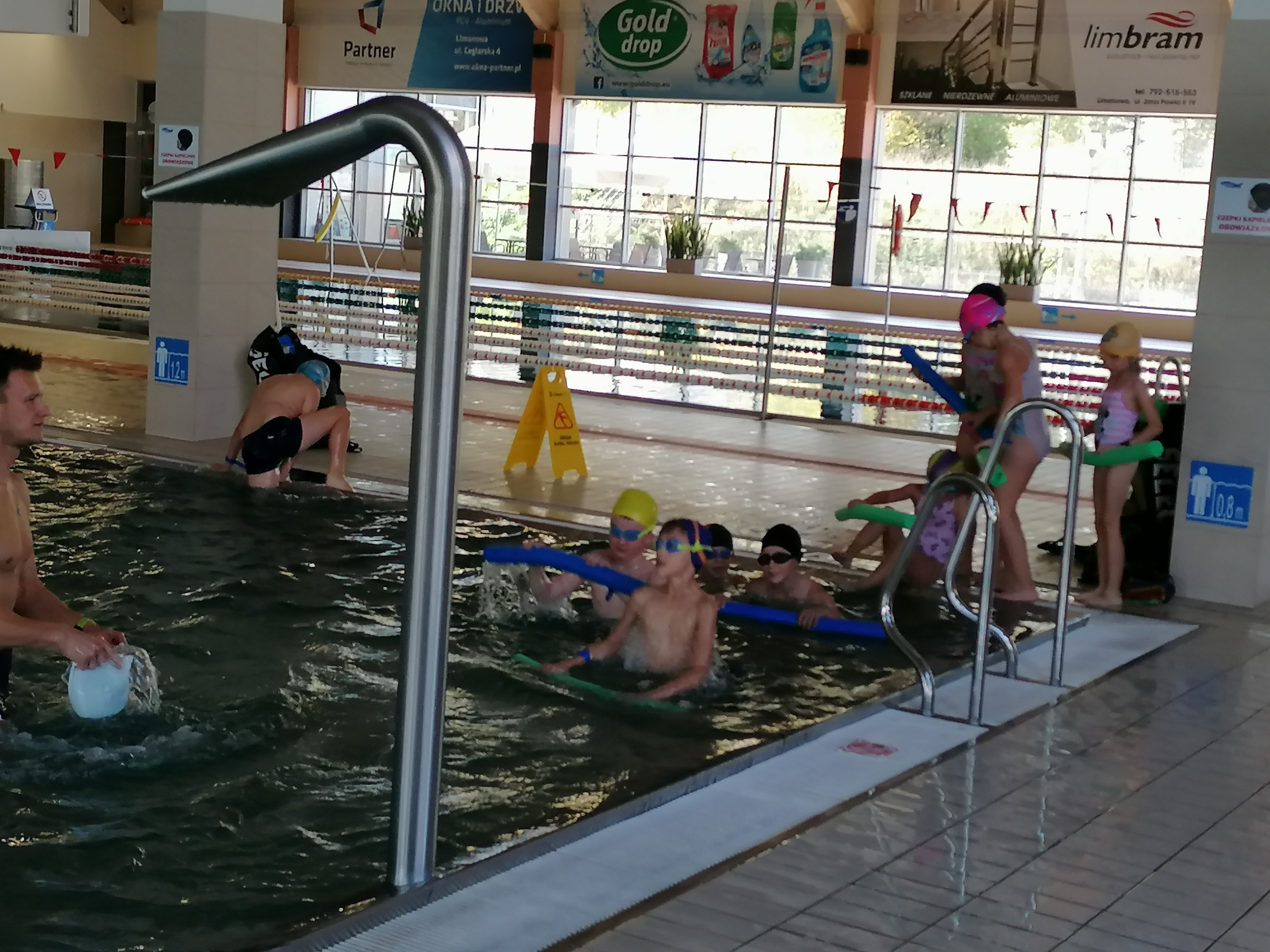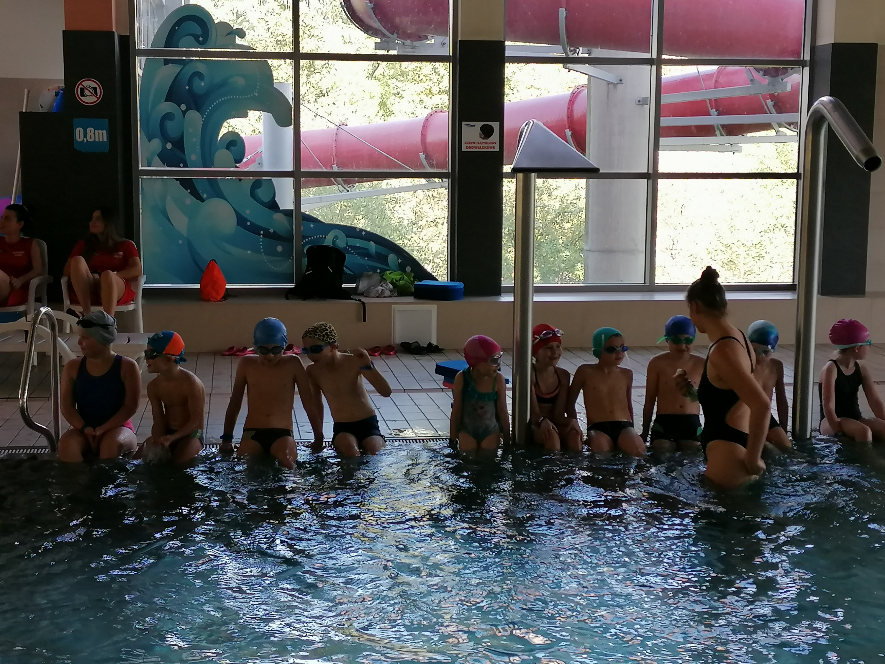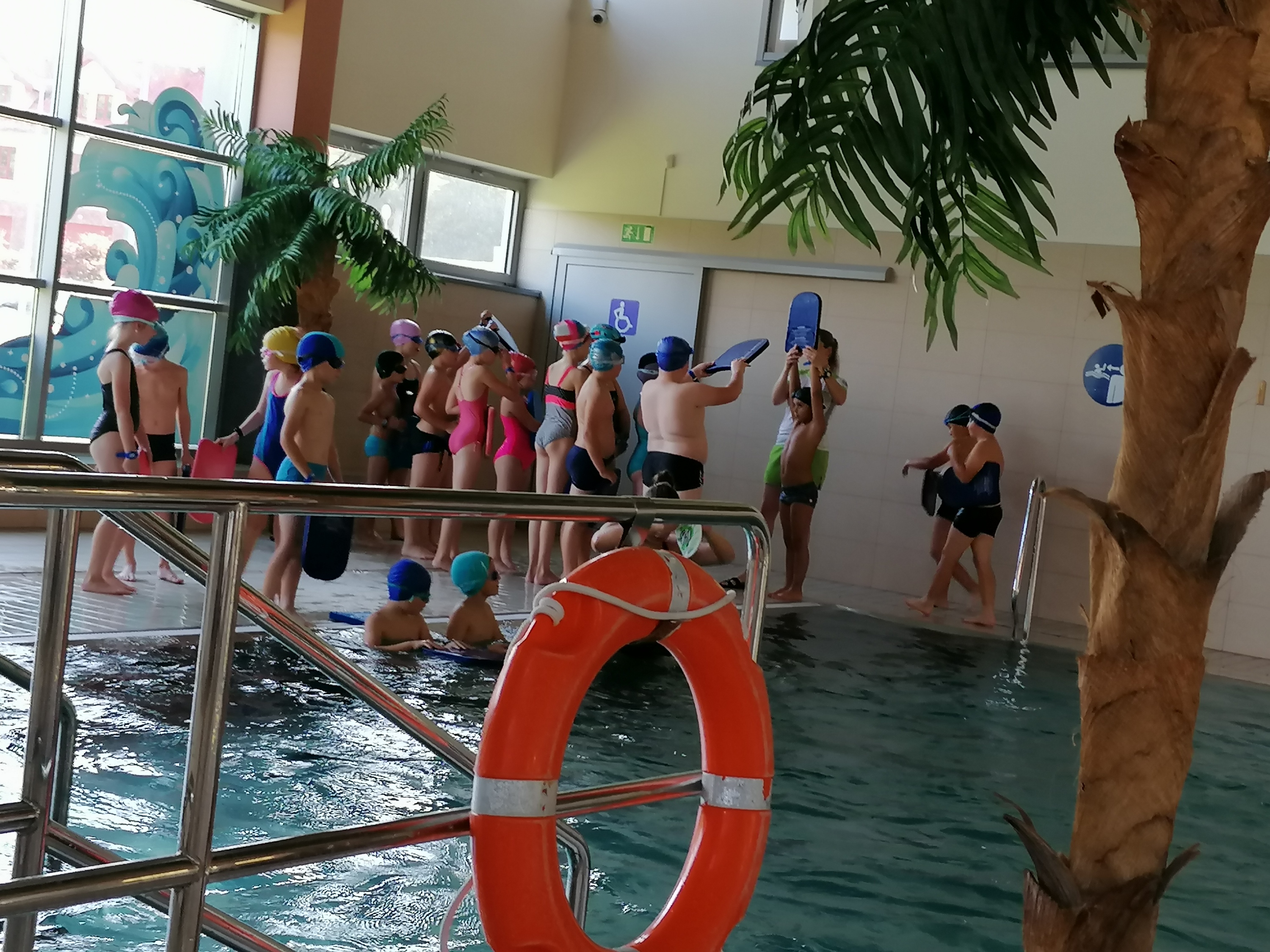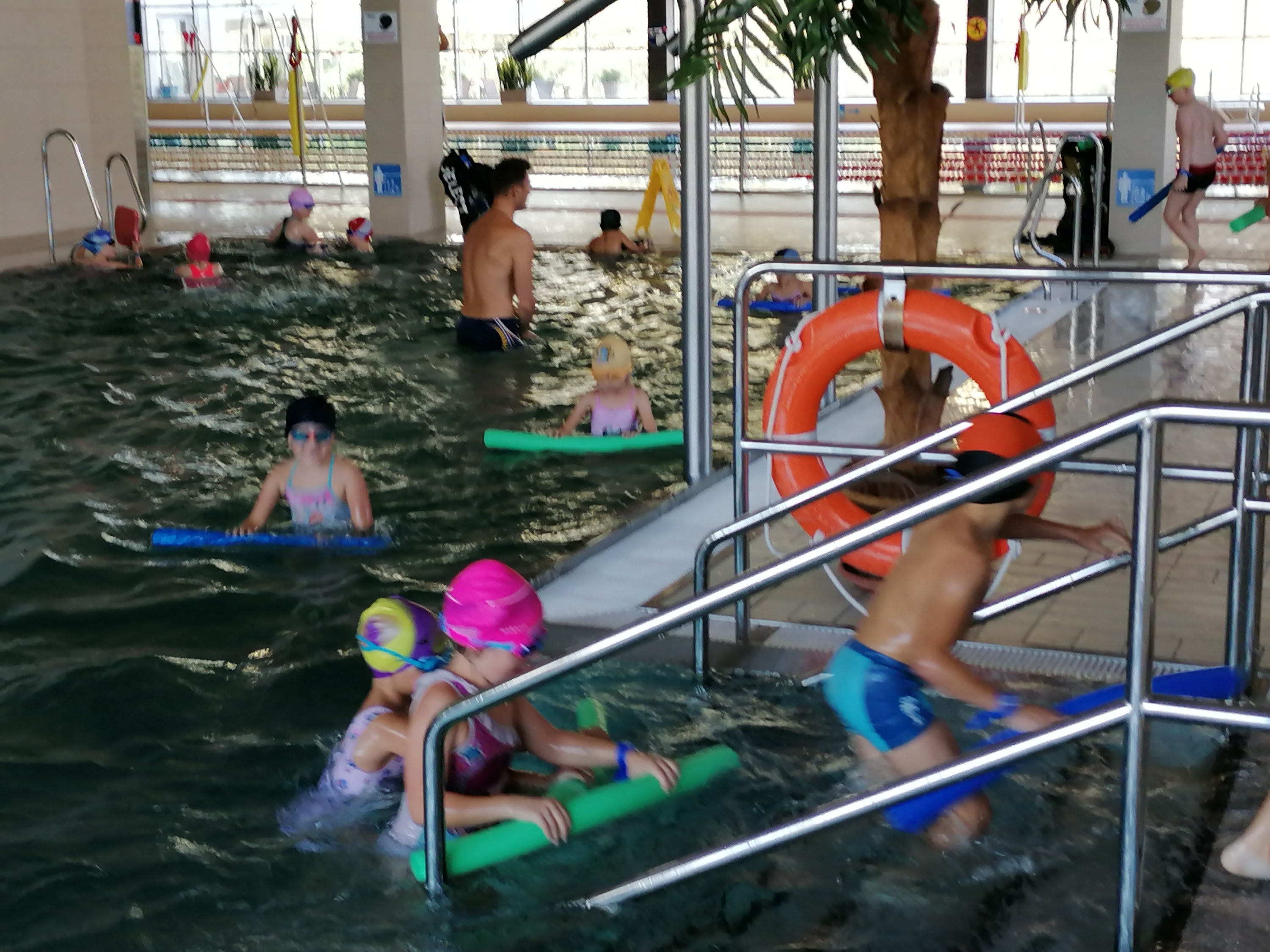Dzieci bardzo chętnie wyjeżdżają na basen do Limanowej. Ćwiczą tam umiejętności pływania pod okiem trzech wspaniałych instruktorów. Pierwszy raz na basenie byliśmy w marcu tego roku, ale ze względu na pandemię wyjazdy zostały zawieszone. Obecnie kontynuujemy naukę pływania. Terminy wyjazdów: 21, 28.09.2020r., 05,12,19,26.10.2020r., 09,16,23.11.2020r.