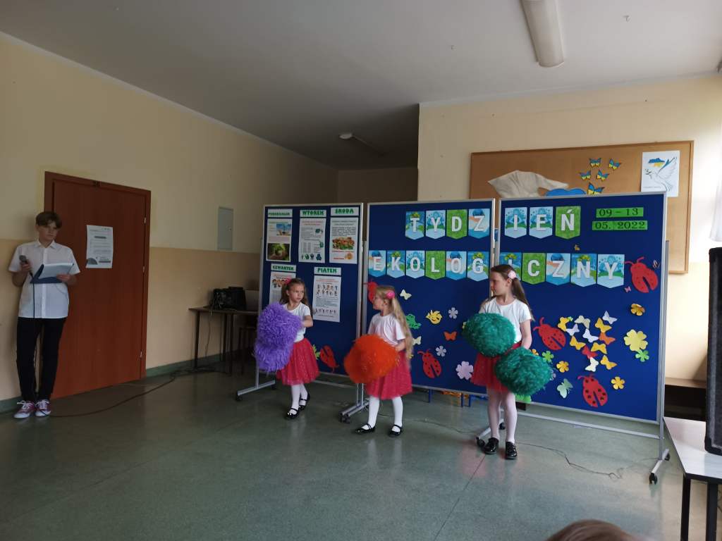 Na kolejne dni zaplanowano: „Sprzątanie Świata”, kiermasz ekologiczny pt. ”Smacznie-zdrowo-kolorowo”, konkurs na najbardziej kolorową klasę oraz turniej sportowy z przyborami z recyklingu.