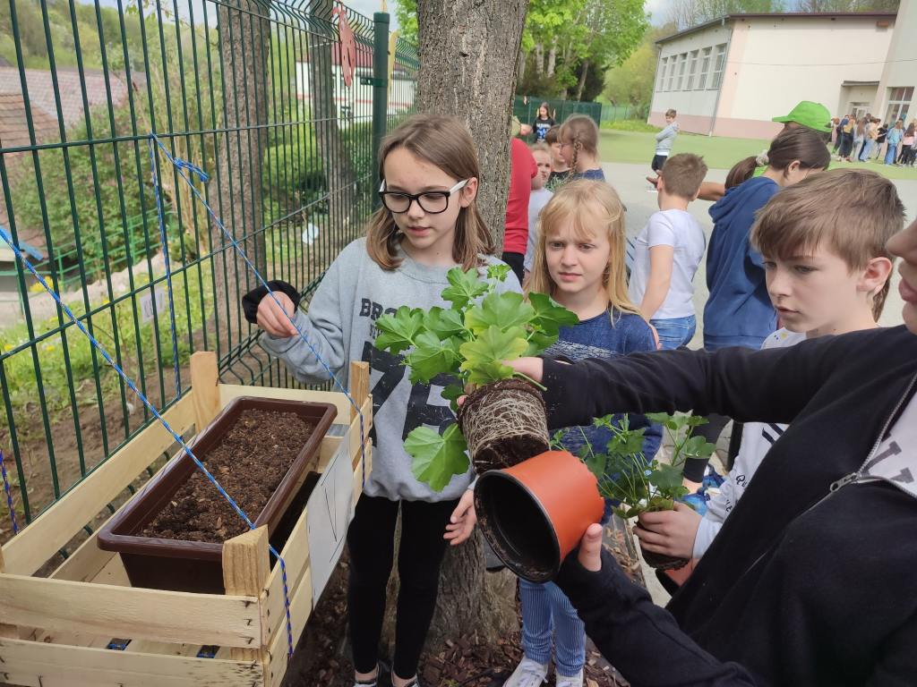 Dzisiaj uczniowie wraz z wychowawcami klasy 1 i 3 przygotowali ciekawe przedstawienie dotyczące ochrony środowiska. W akademii wzięli udział nauczyciele, uczniowie oraz zaproszeni goście: Pan Wójt Gminy Raciechowice Wacław Żarski, Poseł na Sejm Władysław Kurowski, Sekretarz Gminy Halina Adamska-Jędrzejczyk,Radna Gminy Danuta Szewczyk,Eko-Doradca Gminy Jerzy Tymczyszyn oraz Pan Kazimierz Łapczyński. Po uroczystości wszyscy wspólnie mieliśmy okazję zasadzenia kwiatów na wcześniej przygotowanych przez Pana Piotra rabatach. Mamy nadzieję, że uczniowie już niedługo będą mogli patrzeć jak rośnie zasadzony przez nich mały „ogród”.