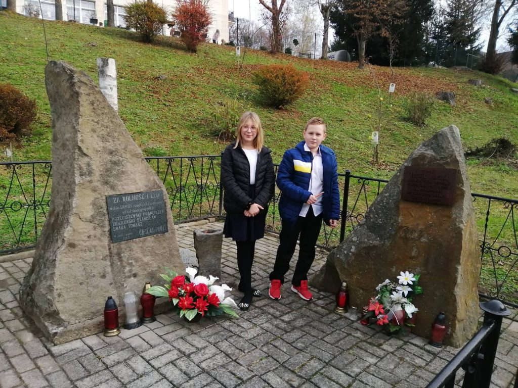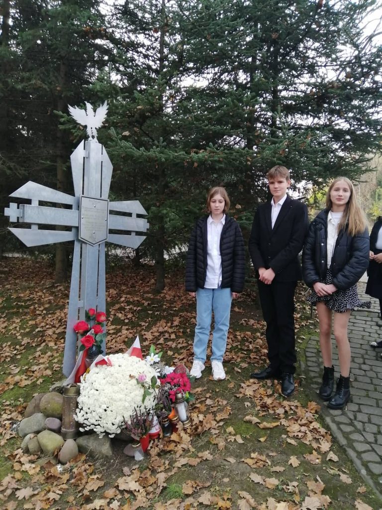 INNE ;), SZKOŁA, WYCHOWANIE PATRIOTYCZNE, WYDARZENIA SZKOŁA PAMIĘTAMY…. Opublikował/a bibliotekagruszow dnia 14 listopada 202214 listopada 2022 W dniach poprzedzających Narodowe Święto Niepodległości uczniowie Szkoły Podstawowej wraz z p. Dyrektor złożyli wiązanki i zapalili znicze pod gruszowskimi pomnikami upamiętniającymi ważne wydarzenia historyczne. Udostępnij: Kliknij, aby udostępnić na Facebooku (Otwiera się w nowym oknie) Facebook Kliknij, aby wysłać odnośnik e-mailem do znajomego (Otwiera się w nowym oknie) E-mail Kliknij by wydrukować (Otwiera się w nowym oknie) Drukuj