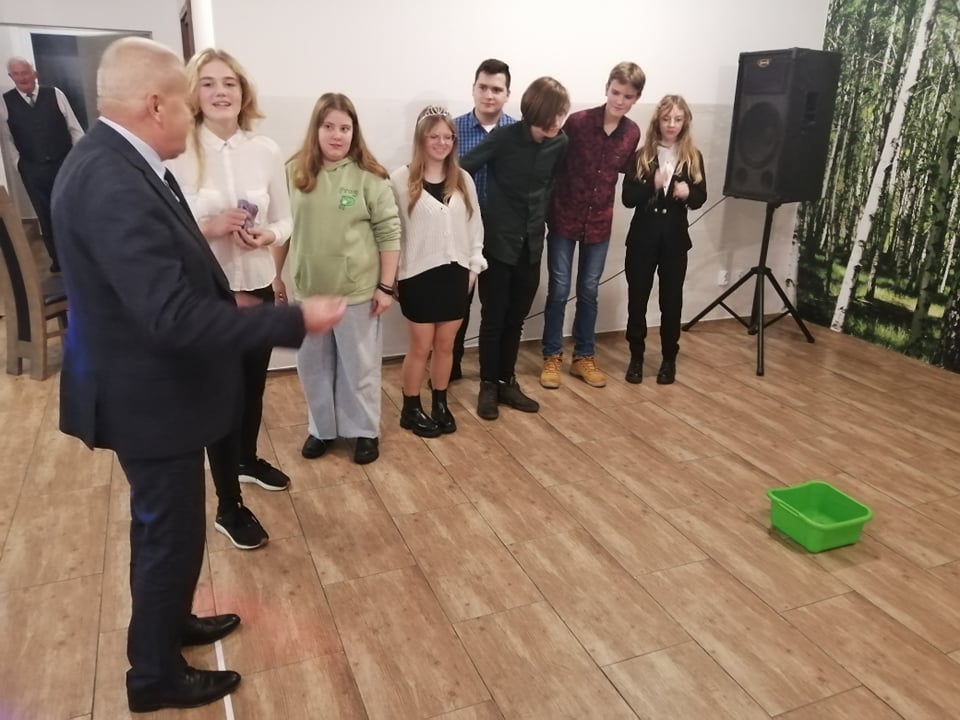 24 listopada 2022r w gospodarstwie agroturystycznym „Pod Gruszą” w Gruszowie odbył się gminny „Bal dla Seniora” zorganizowany przez Stowarzyszenie „Raciechowice 2005” w ramach projektu „Mistrz i uczeń – międzypokoleniowe centra edukacyjne w gminie Raciechowice”. Dla uczestników imprezy nasi wolontariusze, uczniowie klasy 7 i 8, przygotowali andrzejkowe wróżby i animacje. Nie brakowało chętnych do udziału w proponowanych przez młodzież zabawach. Seniorzy swoim uśmiechem, serdecznością i spontanicznością sprawili, że zniknęły wszelkie międzypokoleniowe bariery.