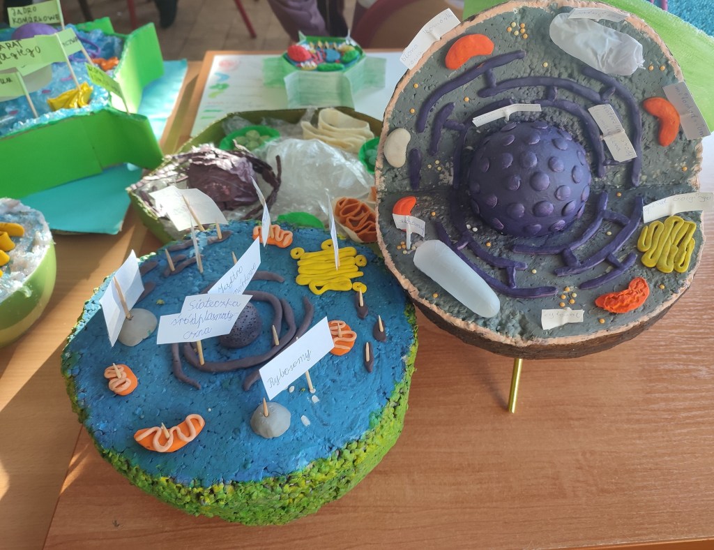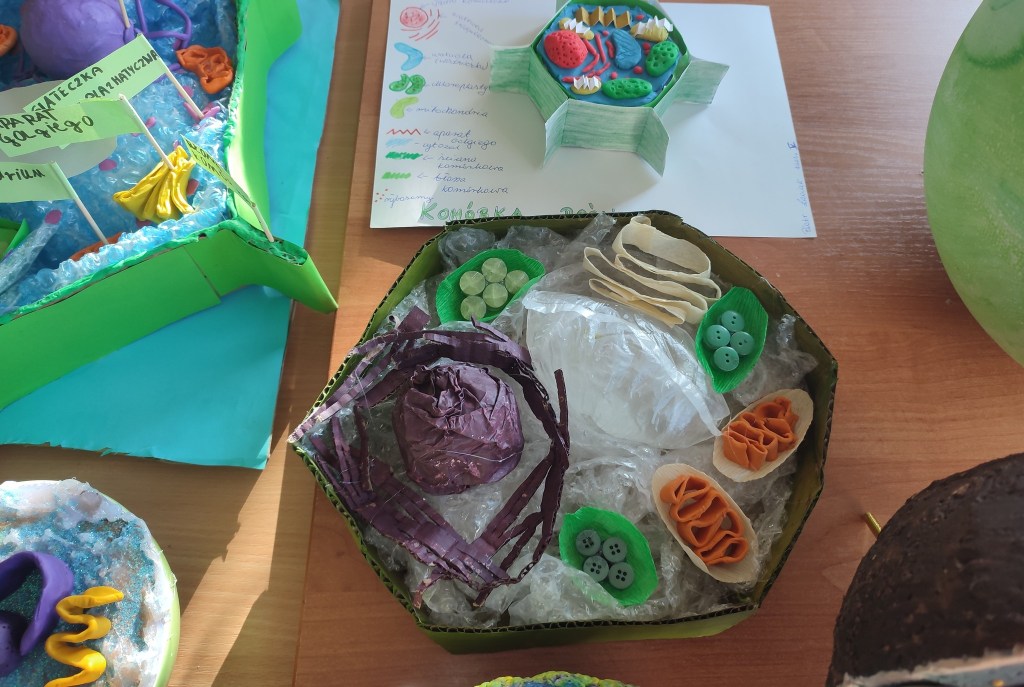 Uczniowie klasy 5 każdego roku wykonują na lekcję biologii model komórki w „3D”. Jest to zadanie, które polega na przedstawieniu budowy komórki roślinnej lub zwierzęcej, przy użyciu dostępnych materiałów. W tym roku prawie wszyscy uczniowie wykazali się wielką kreatywnością. Do wykonania swoich modeli wykorzystali różne materiały np. plastelinę, styropian, bibułę, nawet guziki i klocki lego. Zapraszamy do galerii prac