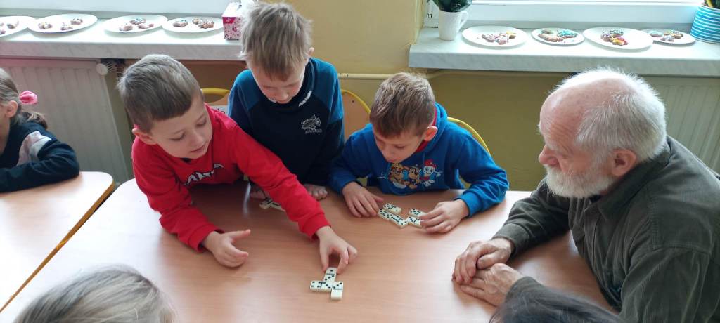 Tym razem dzieci spotkały się z naszymi kochanymi seniorami na zajęciach- Siłownia pamięci. To doskonałe ćwiczenia zarówno dla starszych jak i młodszych dzieci. Każdy uczestnik uczy się nowych rzeczy, ćwiczy już zdobyte umiejętności.