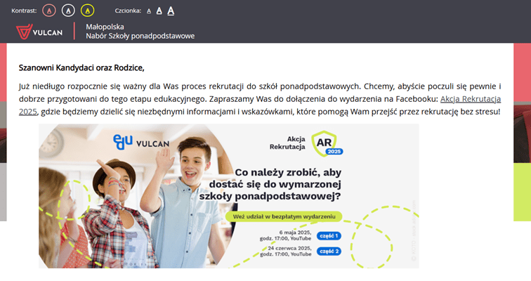 - System rekrutacji VULCAN – NABÓR MAŁOPOLSKA SZKOŁY PONADPODSTAWOWE (np. Łapanów, Limanowa, Tymbark, Bochnia)