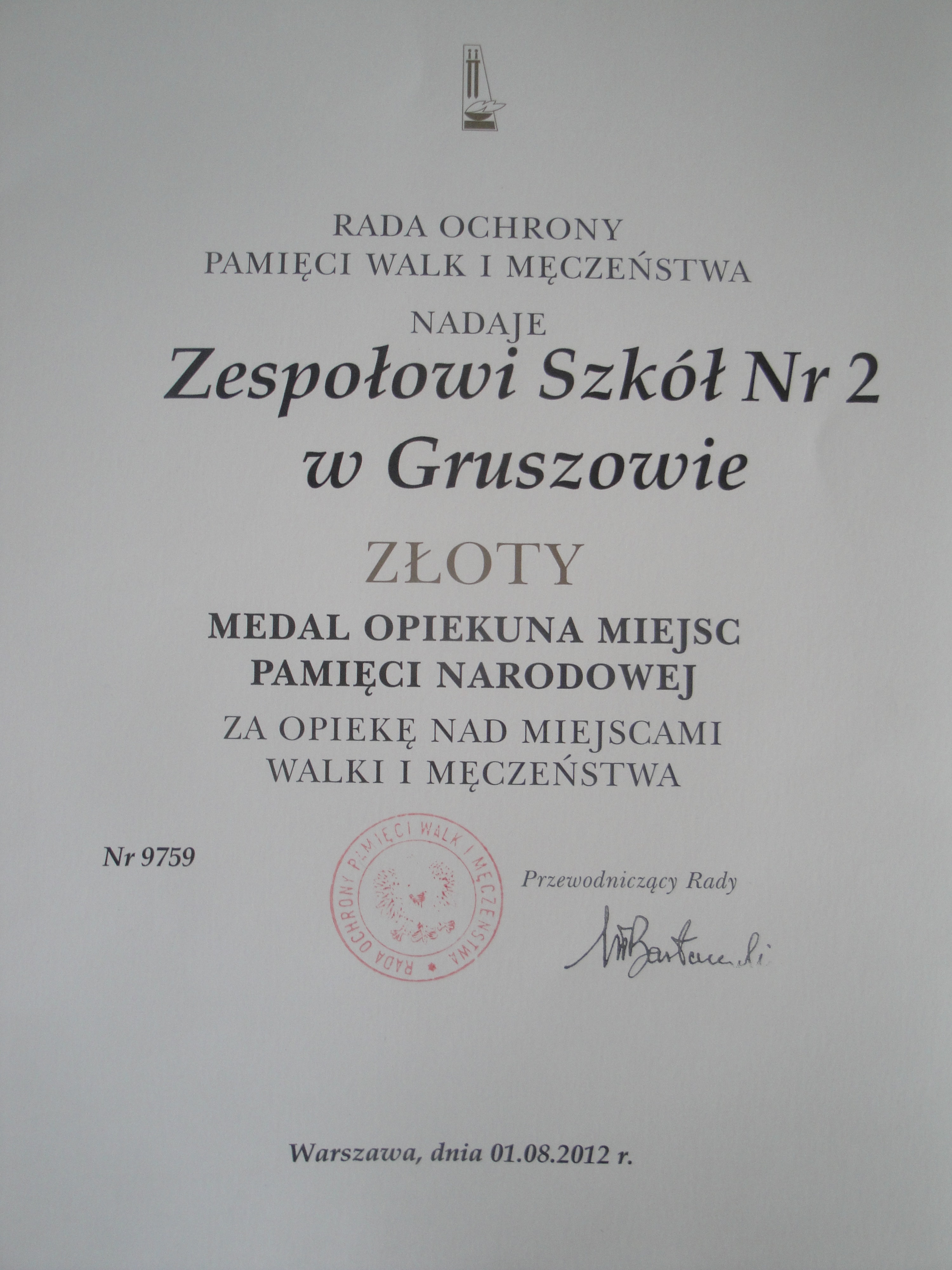 ZŁOTY MEDAL OPIEKUNA MIEJSC PAMIĘCI NARODOWEJ